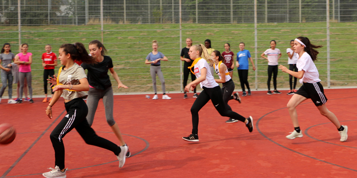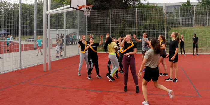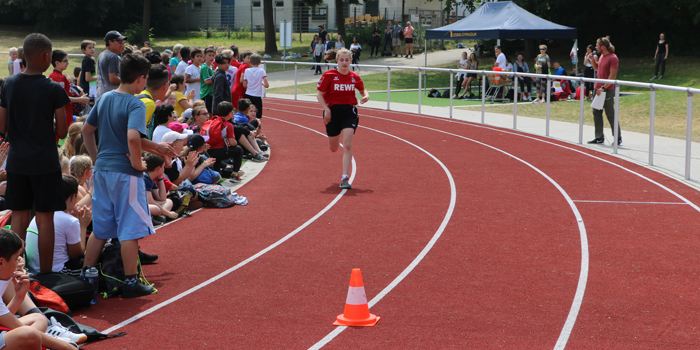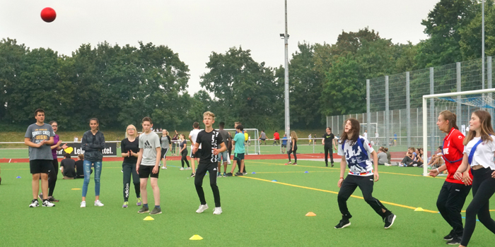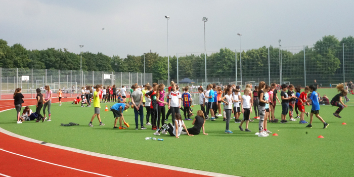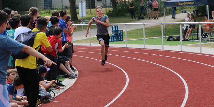 Am vorletzten Schultag vor den Sommerferien war es soweit: Zum zweiten Mal fand das große Lessing-Sportfest statt, an dem sich die Schülerinnen und Schüler aller Jahrgänge beteiligten. Besonders ehrgeizig ging es dabei in den unteren Jahrgängen zu – ob beim Leichtathletik-Parkour der Stufen 5 und 7, beim Fußballturnier der Stufe 6 oder beim Basketballturnier der Achtklässler/innen. Die Oberstufenschüler/innen konnten im Ausdauerlauf gegeneinander antreten und somit schon einmal erste Wettkampferfahrung sammeln, denn einige der Schüler/innen werden im Oktober auch am diesjährigen KölnMarathon teilnehmen.