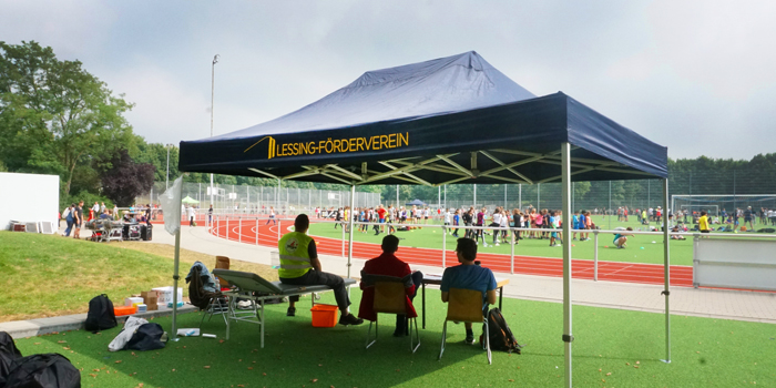 Im Zuge des Sportfestes wurden auch die neuen Lessing-Zelte eingeweiht, die freundlicherweise der Förderverein als Schattenplätze beigesteuert hatte. Vielen Dank dafür! Herzlich bedanken möchte sich die Fachschaft Sport auch bei allen Zündorfer Sponsoren, die uns in diesem Jahr mit Klassen- und Einzelpreisen unterstützt haben.