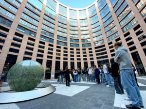 Schon kamen wir zu unserem letzten ganzen Tag in Straßburg, der 28.09.23. Die Lehrkräfte teilten uns in zwei Gruppen auf, damit wir nicht in einer großen Gruppe durch das Europarlament gehen. An dem Tag zuvor zogen die Lehrkräfte Lose um festzulegen, welche Gruppe als Erstes aufbricht und welche als zweites. Meine Gruppe war leider die erste, somit mussten wir früher als die anderen aufstehen.