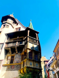 Am Dienstag, dem 26.09.23, fuhren wir zu unserer ersten Stadtführung in Colmar. Wir teilten uns in vier Gruppen auf und guckten uns beliebte Sehenswürdigkeiten wie z.B. „La Maison Pfister“(= Das Haus Pfister/ Pfisterhaus) an, während unsere Stadtführer uns etwas über die Sehenswürdigkeiten und Colmar an sich erzählten.